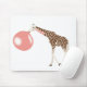 Giraffe bläst eine rosa Blase..das ist hübsch besonderes. Coole Giraffe kauen Kaublasen Kaugummi und blasen eine rosa Blase. Die Flecken der Giraffe am Hals beginnen sich rosa zu färben. Modernes Kunstdesign ideal für jeden. Wilde Tierbilder mit lustiger Drehung.