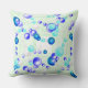 Dieses Kissen zeigt abstrakt Blasen an einer weißen Leinwand mit einem Neon-Cyan-Quadrat-Overlay und schafft so ein fesselndes visuelles Bild.