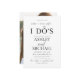Dieses moderne Paar Shower Engagement Party Einladung ist für Blasen und Brüche vor I Do's, in einem schwarz-weiß Design mit dem "O" von "I DO" mit einem Diamanten, um einen Ring zu machen, und handgeschriebene moderne Drehbücher Typografie. Auf der Rückseite der Karte befindet sich Ihr Lieblings-Verlobung-Foto. Copyright Elegant Invites, alle Rechte vorbehalten.