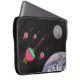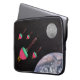 Eine Urlaubsraumfantasie mit bläsernen Lichtwelten umkreist die Erde mit dem Mond in der Ferne und einem Sternenhimmel-Hintergrund.