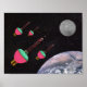 Eine Urlaubsraumfantasie mit bläsernen Lichtwelten umkreist die Erde mit dem Mond in der Ferne und einem Sternenhimmel-Hintergrund. Es sieht fast wie eine klassische Si-Fi-Thema oder Raum-Alien-Invasion mit der Blase-Lichter als eine Armada von Raumfahrzeugen. Aber es ist einfach eine Kunstillusion der Science Fiction als Kunstwerk.