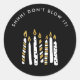 Blow it Gold Glitzer Überraschung Geburtstagsparty Sticker mit diesen Vorlagen von Cali Graphics. Diese Aufkleber sind mit niedlichen, von der Hand gezogenen Kerzen aus Weiß und Gold auf schwarzem Hintergrund versehen.