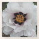 Mit dieser dekorativen Glasgetränkeküste, die das Foto einer großen, weißen Blume mit lila, dunklen Mittelkerzen aufweist, schützen Sie Ihren Tisch vor Wasserzeichen und Flecken. Ein schönes Blumendesign!