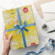 Frühjahrsexplosion abstrakt, modern, Fingermalerei mit gelben und roten Blüten. Elegantes und originelles Verpackungspapier.