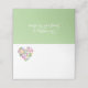 Hübsche Hochzeitsgefaltete Platzkarte in Weiß und Grün, mit einer farbenfrohen kleinen, blumengeschmückten Herzform, auf der Vorderseite. Personalisieren Sie von Hand für jede Person am Empfang.