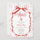 Mit dieser eleganten Apple of Our Eye Einladung können Sie eine stilvolle Herbst-Babydusche genießen. Mit fett roten Bändern, einer klassischen Apfelillustrierung und anmutiger Typografie ergänzt dieses Design eine Obstgarten- oder Herbstdusche. Personalisieren Sie, um es einzigartig zu machen.