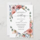 Freuen Sie sich auf diese elegante, florale Einladung in Aquarelltönen. Einladung zur Präsentation Ihrer Hochzeitsdetails in geometrischem Rahmen, umgeben von zarter handgemalten Aquarell-Blume in einer anmutigen Kombination aus Rosa, Rosa, Rosa, Elfenbein, staubige Rose, staubigen Blau- und Salbeifarben. Rückseite der Karte in einem eleganten staubigen blauen Ton. Teil unserer "Blissful Floral" Hochzeit- und Veranstaltungskollektion.