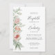 Die links Seite dieser romantischen Hochzeitseinladung besticht durch einen Blumenstrauß aus Pfirsich, blüschigen Blume und Grünpflanzen. Der anpassbare Text kombiniert Handschrift, Copperplate und kursiv Schriftart in Holzkohlegrau auf weißem Hintergrund. Die Rückseite weist eine koordinierende Vollfarbe auf.