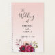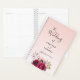 Ein moderner und eleganter Hochzeitsplaner. Eine helle Rose Gold, rot rosa Farbverlauf/ombre Hintergrund. Die Blume sind in dunkelbordeauxfarbenen und goldenen Rose gehalten. Personalisieren und fügen Sie Ihre Vornamen und das Datum der Hochzeit. Der Text: Die Hochzeit von wird mit einem großen handgeschriebenen Stift geschrieben, mit schwarzen, farbigen Buchstaben. Zurück: Rose goldfarbener Hintergrund.