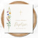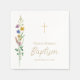 Diese blühende Taufpapier-Serviette bietet Wildblumen und ein Kreuz mit stilvollen Schriftzeichen. Einfach anpassbar. Original Wasserfarbe © Michele Davies.