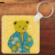 Schlüsselring mit einem gut gekleideten Teddybär unter Blume