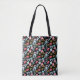 Eine schöne bunte und feminine Totentasche in rosa, blau & fröhlichen Sommerfarben auf schwarzem Hintergrund. Sie können den Hintergrund im Designwerkzeug für jede Farbe ändern, die Sie gewollt haben - Kate Eden Art