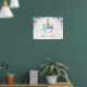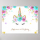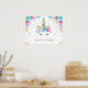 Dieses blumengeschmückte Einhornschild kann für Geburtstagspartys, Babyduschen oder für Dekorationszwecke im Zimmer Ihres Kindes verwendet werden. Aquamarine, rosa und lila Blumen auf dem Poster mit einem schönen Einhorn.