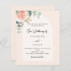 Ein goldener Hintergrund der Rose mit einem Bogen. Dekoriert mit einer Rose Gold und rosa Blumen, Rose Blume und grüne Aquarell Eukalyptusgrün. Personalisieren Sie Ihre Namen und Details und fügen Sie diese hinzu. Zurück: Rose goldene Hintergrundfarbe. Fügen Sie Ihre Hochzeitswebsite url zum QR-Code für Details und/oder UAWG. 1 Blatt = 1 Einladung gedruckte Kante zu Kante.