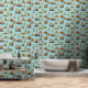 Verzieren Sie Ihr Baby-Jungs-Zimmer mit dieser coolen Tapete aus einem Baufahrzeug. Traum von kleinen Jungen wahr werden lassen. Schöne Aquarellfahrzeuge mit blass blauen, aquamarin blauen Hintergrund.