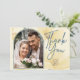 Dieses sehr blassgelbe und weiche blaue Aquarell ist ein romantisches und stilvolles Thema für Ihre Hochzeitsausstattung und Ihr Party. Die Blume in Gelb und Blau sind weich und elegant. Dieses Dankeschön hat Platz für Ihre Namen, Ihre eigene Danksagung und ein Foto des Ehepaares. Dieses Dankeschön ist Teil einer Reihe von Hochzeitszubehör und Party Zubehör und der Lieferant wird mit dieser Einladung koordinieren, um Ihre Vorbereitungen einfach zu machen.
