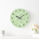 Blassgrünes Leaf-Muster. Große Wanduhr