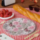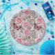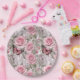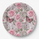 Ai Aquarellfarben botanische Abbildung von rosa Rosen und Schmetterlinge hübsche pastellfarbene Papier Teller.