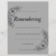 "Ein feierliches und respektvolles Begräbniseinladungs-Set vor einem gedämpften grauen Hintergrund. Elegante, schwarze Blume schmücken die Ränder und verstärken den düsteren Ton. Der Text, in einem formellen Schriftart geschrieben, vermittelt die Details des Dienstes mit Anmut und Einfachheit, unter Anerkennung der Erinnerung an die Verstorbenen. Diese Einladung soll die Schwere des Ereignisses widerspiegeln, mit unterstrichenen, aber nachdenklichen Details, die ein Gefühl von Reflexion und Erinnerung wecken."