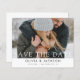 Budget Modernes und elegantes Foto Save the Date Hochzeitskarte. Die Save the Date einladende Einladungskarte beinhaltet weiße Typografie, schick und schlichtes Design auf weißem Hintergrund, mit dem Sie Ihre individuelle Verlobung Fotografie hinzufügen können.