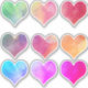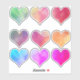 Jedes Blatt enthält 9 Aufkleber eines Herzens in verschiedenen Farben. Die Blätter sind in verschiedenen Größen und mit weißem oder transparentem Hintergrund erhältlich. Ideal für Scrapbooking oder Kunsthandwerk.