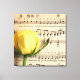 Noten und Noten mit einer schönen gelben Rose, die auf dem Dach liegt. Perfektes Geschenk für den Musiker in Ihrem Leben.