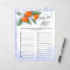 Das Blatt Papier-Spiel "Baby Item ABC" für Babydusche ist mit einer Illustration einer köstlichen Mandarine mit Blume in einem Aquarell-Stil dekoriert.
