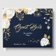 Blätter aus weißem Blütengold marineblau Gästebuch