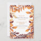 Rustikale Blätter aus dunklem Rot, Orange und Gold bilden den Rahmen für das weiße Zentrum dieser Herbsteinladung. Es eignet sich für jede Jahreszeit Feier oder Anlass. (FP). <br/>() Die Karte lässt sich einfach mit Ihrem Text, Schriftart, Schriftart, Papierform und der Auswahl von sechs Papiertypen anpassen.<br/>() Nicht genau, was Sie suchen? Alle unsere Produkte können auf Ihre Bedürfnisse zugeschnitten werden, ohne Aufpreis.<br/>() Kontaktieren Sie uns einfach unter askpixieprints@aol.com.<br/>() ) Koordinierung der verfügbaren Produkte: frag uns einfach!