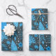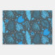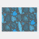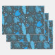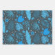 Es handelt sich um wunderschöne exotische tropische Blätter in Blau und Türkis, darunter Blätter aus Palmen, Monstera-Blätter und kleine Blume auf dunklem Hintergrund. Es ist ein cooles Verpackungspapier für tropische Party.