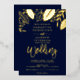 Herbstlaube aus Goldfolie, marineblau Hochzeitseinladung mit handgemalten goldgelben Blattwerk. Der Hintergrund ist vollständig anpassbar, perfekt für Herbst elegante und schicke Hochzeiten.