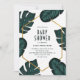 Feiern Sie die Mutter mit der tropisch inspiriert Babydusche. Diese botanische Babydusche lädt mit Bananenbäumen und Splittblättern zu Blätter ein, die sich perfekt für die Sommerduschen eignen. Diese Einladung ist für jeden Anlass individuell anpassbar. Matching-Elemente sind verfügbar.