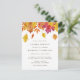 Die Herbsthochzeit lädt Sie mit der Postkarte ein. Es verfügt über Aquarellgärten fallender Blätter in Herbsttönen. Personalisieren Sie diese durch Hinzufügen von Namen, Daten, Uhrzeiten und anderen Details. Diese Blumenzettel Postcard ist ideal für Hochzeiten im Herbst. Matching-Elemente sind verfügbar.