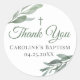 Taufsticker mit grün-grauem Dekor und Aquarellgrün.