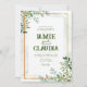 Wasserfarbenes Grünfolien Blätter Hochzeit Einladungskarte Diese klassische elegante Aquarellpflanze mit goldenem Rahmen Hochzeit Einladung ist einfach und vielseitig. Das Design ist schick weiß und grün mit einem Monogramm, Skriptdetails, einfachem Goldrahmen und formalem bearbeitbarem Text. Klicken Sie auf die Schaltfläche Bearbeiten, um dieses Design anzupassen.