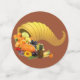 Schönes Horn von viel mit Kürbis, Früchten und Herbstblättern auf rötlich braunen Schattierungen Table Confetti.