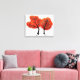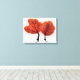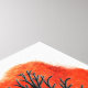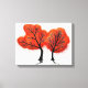 Ein Fest der reichen Farben und der stillen Schönheit des Herbstes. Die Herbstblätter sind mit zwei silhouetted Bäumen gerahmt, die von einem Bruch mit einer lebendigen orangefarbenen Wasserfarbe sind und die Blätter des Sturzes an einem knackigen weißen Himmel widerspiegeln. Ein gewagtes, sauberes Stück, das Wärme und Kontrast zu jedem Raum bringt.