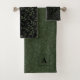 Die Badehandtücher sind in einem angenehmen Design mit schwarz-grün Blätter und einem eleganten Monogramm gestaltet, was dem Bad eine frische und stilvolle Atmosphäre verleiht.