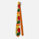 Diese Krawatte hat ein Design von Blätter wiederholt, um einen Haufen von Blätter in den Farbtönen Gelb, Rot, Orange und Grün zu machen.