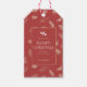 MIstletoe Weihnachtsgeschenk Tag mit individueller Nachricht und Familiennamen in der Mitte auf einem eleganten weißen Winter Blätter rot.