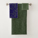 Dieses Set mit Badehandtuch ist mit einem raffinierten, grün-dunkelblauen Blatt-Muster versehen. Das Design präsentiert sich mit seinem exquisiten Laub lebendig und ästhetisch ansprechend.