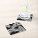 Blätter mit weißer Handfläche auf schwarzem Hinter Rechteckiger Pappuntersetzer
