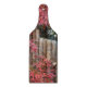 Auf diesem paddelförmigen Glasschneidebrett, das ein Foto mit roten japanischen Ahornfarben-Blätter an einem Bambuszaun zeigt, würfeln und würfeln.