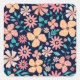 Blätter und Blume Muster Blau Quadratischer Aufkleber