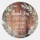 Rustikale Elegante Aquarell botanische Blätter auf dunklem Stallholz, Hochzeit danke Ihnen Aufkleber mit Dankeschön Nachricht. Diese Hochzeitsbedankungen sind die perfekte Art, Ihre Gastgeschenke Hochzeiten zu personalisieren. Fügen Sie Ihre Braut- und Bräutigamen und das Hochzeitsdatum hinzu und Sie können den Dankeschön Text ändern.