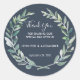 Rustikale Elegant Aquarell botanische Blätter auf marineblau Hintergrund, Hochzeit danke Ihnen Aufkleber mit Dankeschön Nachricht. Diese Hochzeitsbedankungen sind die perfekte Art, Ihre Gastgeschenke Hochzeiten zu personalisieren. Fügen Sie Ihre Braut- und Bräutigamen und das Hochzeitsdatum hinzu und Sie können den Dankeschön Text ändern.
