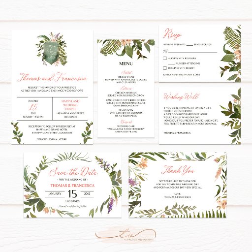 Forest Leaves Watercolor Wedding CollectionDesignt von Glaiza Legaspi