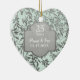 Das schöne fünfundzwanzigste Hochzeitssaftdekor auf pastellfarbenem Minzaquahintergrund mit einem Overlay aus eleganten silbergrauen Blätter. . Passen Sie den Namen und den Text des Datums an. Die Rückseite des Ornaments hat ein passendes Blatt Muster.