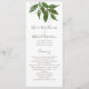 Eine lange, schlanke Rack-Trauung, die der Service-Vorlage entspricht. Mit einem einfachen, blumengeschmückten und eleganten Zeremonieservice, einer Hochzeitsfeier, einer braungrauen, magnolischen Blütenfarbe, einem botanischen Blätter aus grünem Blattwerk, einer trendigen Kalligraphie-Schrift, einem Gottesdienstprogramm, einem Kirchenservice-Zeremoneprogramm, einem Brautprogramm für Hochzeitsfeiern, simplizistisch elegant, modern, eine einfache kirchliche Hochzeitskarte