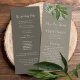 Eine lange, schlanke Rack-Trauung, die der Service-Vorlage entspricht. Mit einem einfachen, blumengeschmückten und eleganten Zeremonieservice, einer Hochzeitsfeier, einer braungrauen, magnolischen Blütenfarbe, einem botanischen Blätter aus grünem Blattwerk, einer trendigen Kalligraphie-Schrift, einem Gottesdienstprogramm, einem Kirchenservice-Zeremoneprogramm, einem Brautprogramm für Hochzeitsfeiern, simplizistisch elegant, modern, eine einfache kirchliche Hochzeitskarte